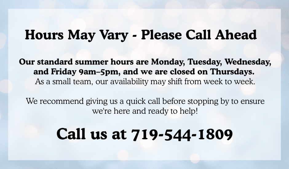 Call us before your visit: 719‑544‑1809