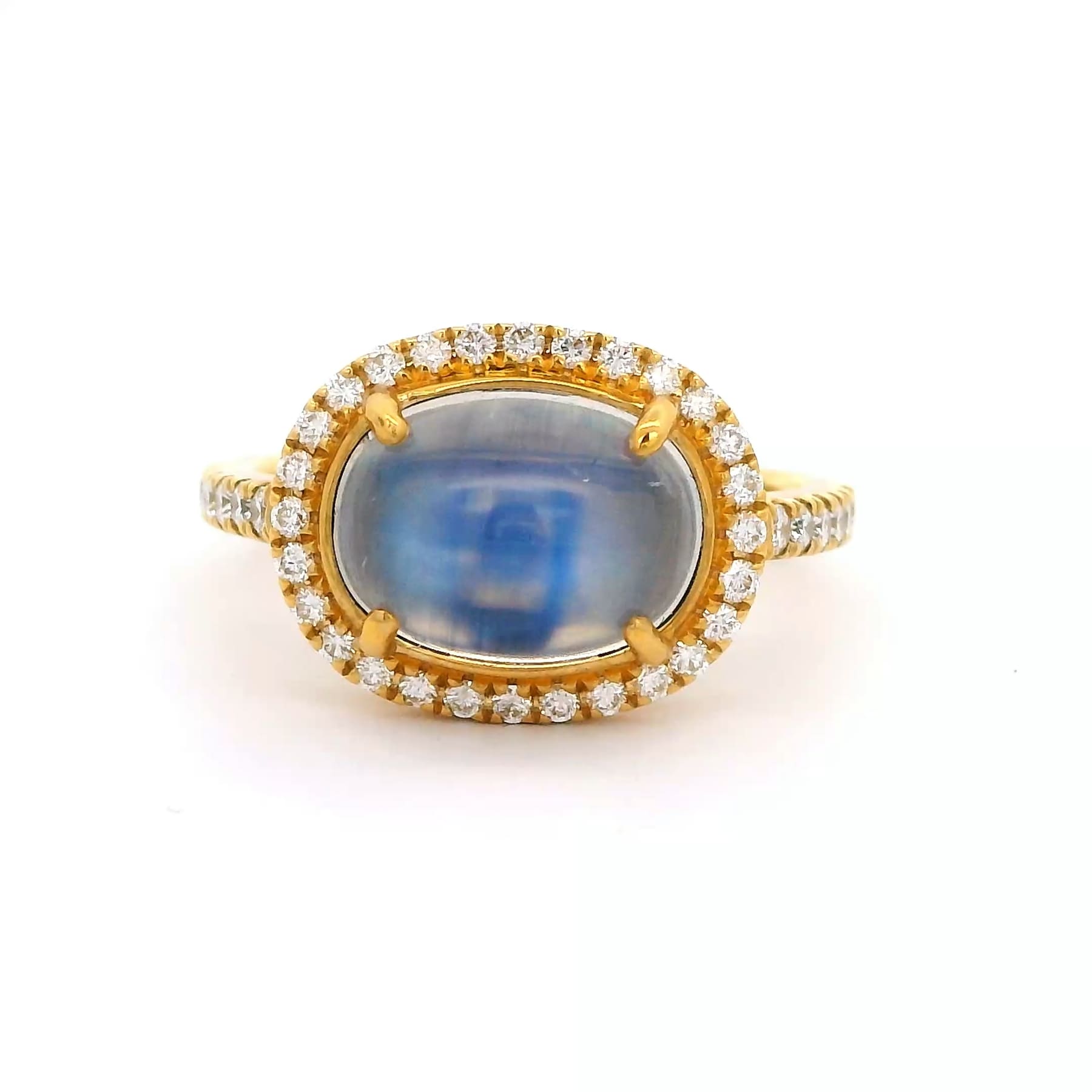 Moonstone Oval Ring With Diamond Halo