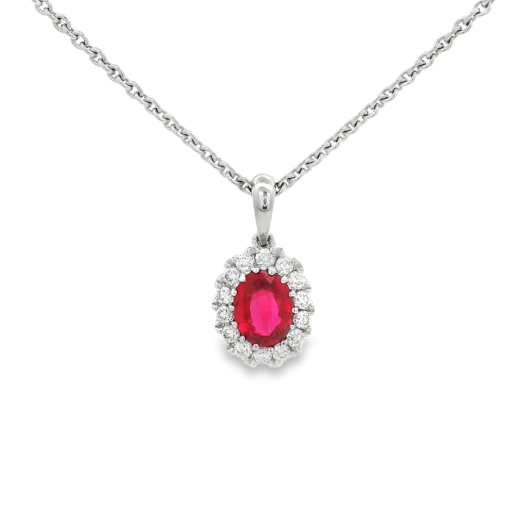 Oval Ruby Pendant With Diamond Halo