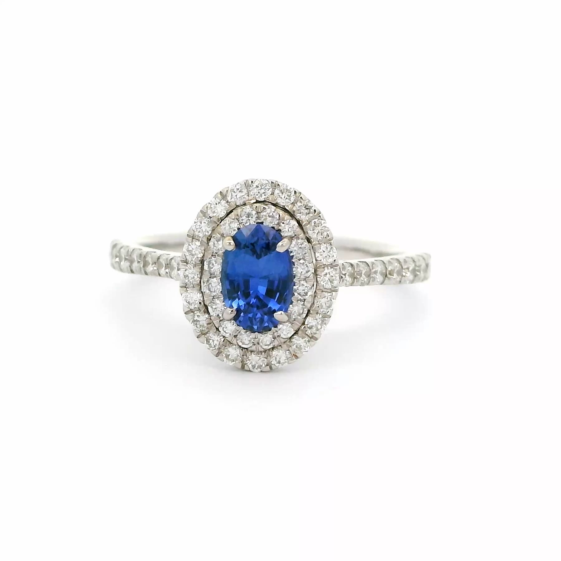 Oval Sapphire Ring With Double Diamond Halo