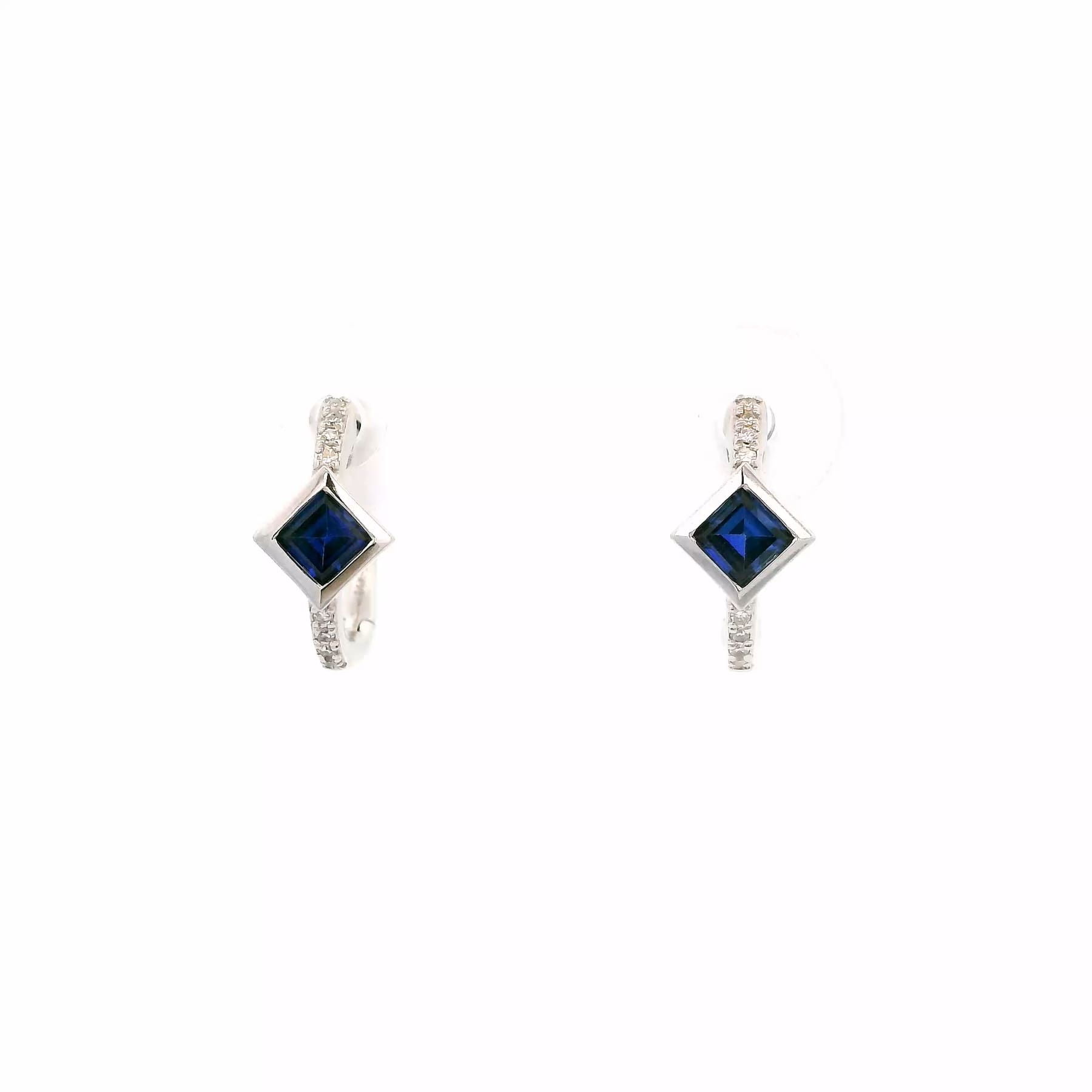 Princess Cut Corrundum Bezel Set Small Hoop Earrings