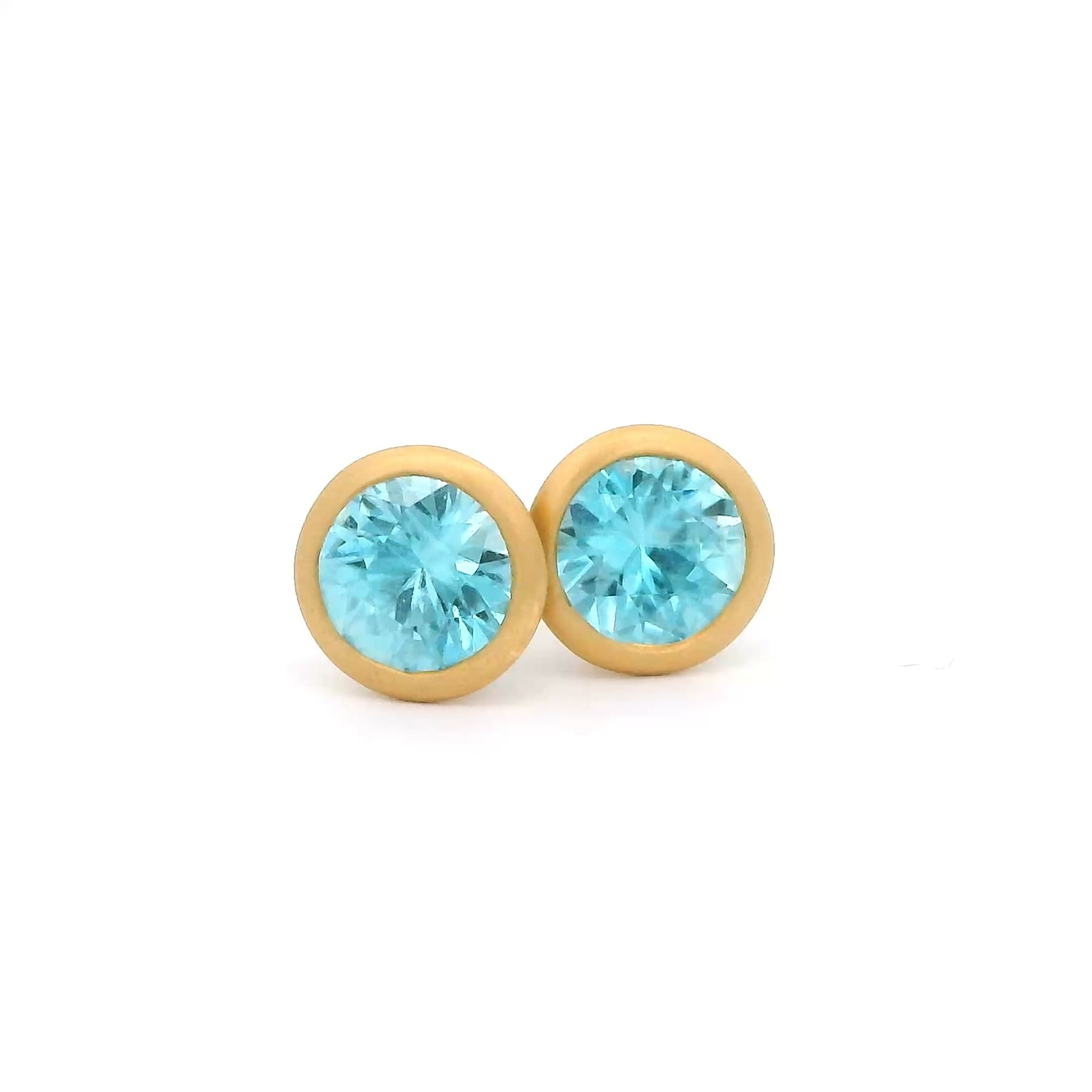 Round Blue Zircon Bezel Set Studs