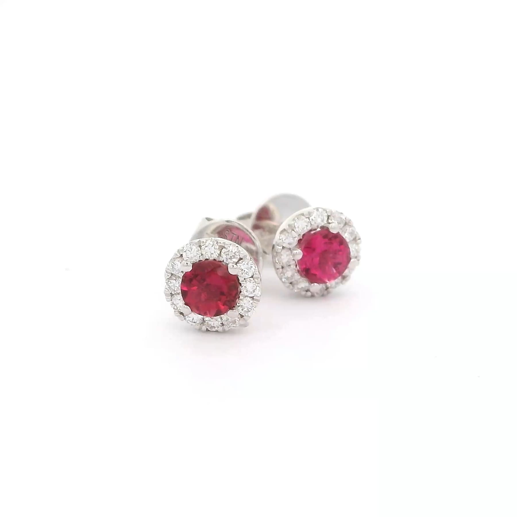 Round Ruby Studs With Diamond Halo